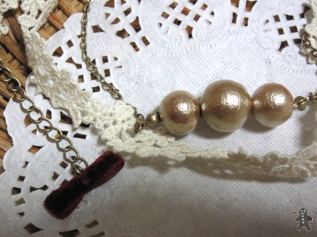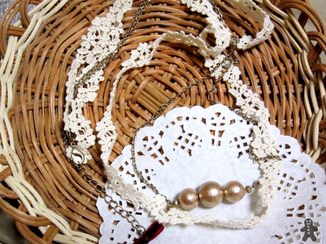 コットンパールの色がベージュでレースがキナリ、リボンがボルドーのほうの色にしました。